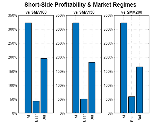 One common method to avoid the headwind from this long-term market drift is either to completely bypass the short side of a trading signal or to add a market regime filter. This filter allows traders to take short positions only when the market is in a bear phase (often identified using Moving Averages) or when market volatility is elevated.